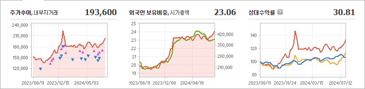 셀트리온의 현재 주가는 193,600원으로, 전일 대비 6,400원이 하락했습니다. 주주 현황을 살펴보면, 셀트리온홀딩스와 그 외 86명이 총 28.29%의 지분을 보유하고 있습니다. 셀트리온은 바이오 기업으로, 장중 기준 주가는 193,600원입니다. 현재 시가 총액은 39조 6,013억 원이며, 발행된 주식 수는 216,993,223주입니다. 외국인 보유 비중은 23.06%에 달하며, 장중 거래량은 1,034,567주를 기록했습니다. 최근 매출액은 7,370억 원에 이릅니다.