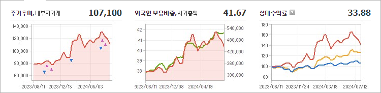 현재 기아의 주가는 107,100원으로, 전일 대비 5,000원이 하락한 상태입니다. 주주 현황을 살펴보면 현대자동차와 기타 4인이 36.11%의 지분을 보유하고 있습니다. 기아는 자동차 제조업체로, 현재 주가는 107,100원입니다. 기아의 시가총액은 38조 5,064억 원이며, 총 발행 주식 수는 399,858,417주입니다. 외국인 투자자의 보유 비율은 41.67%이며, 장중 거래량은 1,332,881주에 달했습니다. 기아의 매출액은 262,129억 원을 기록했습니다.