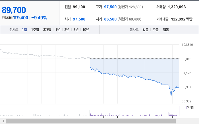 현재 LG전자의 주가는 99,100원으로, 전일 대비 4,600원이 하락했습니다. 주주 현황을 살펴보면 LG와 그 외 2인이 총 33.68%의 지분을 보유하고 있습니다. LG전자는 내구 소비재 분야의 기업으로, 현재 주가는 99,100원입니다. 회사의 시가총액은 14조 6,792억 원이며, 발행 주식 수는 163,647,814주입니다. 외국인 보유 비중은 32.58%이며, 장중 거래량은 730,066주에 달했습니다. LG전자의 매출액은 210,959억 원에 이릅니다.